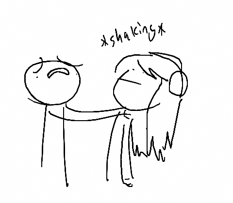 An artistic depiction of a person in distress, shaking Zoey as they wish to use the, "gay pencil," unable to do so due to a limitation in selection.